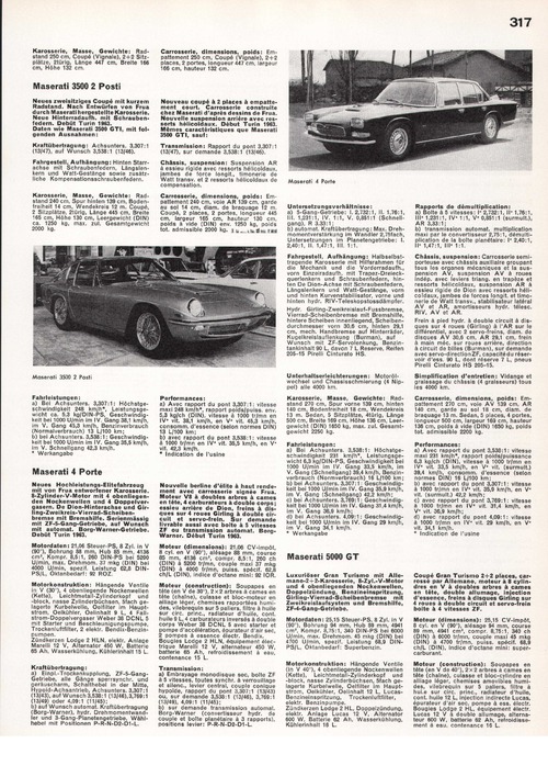 Bekanntes, durch die Gebrüder Maserati 1926 gegründetes, italienisches Werk mit glorreicher Sportvergangenheit. Erster italienischer Vertreter mit Benzineinspritzung. Baut zur Zeit auch Elitefahrzeuge von hoher Leistung
