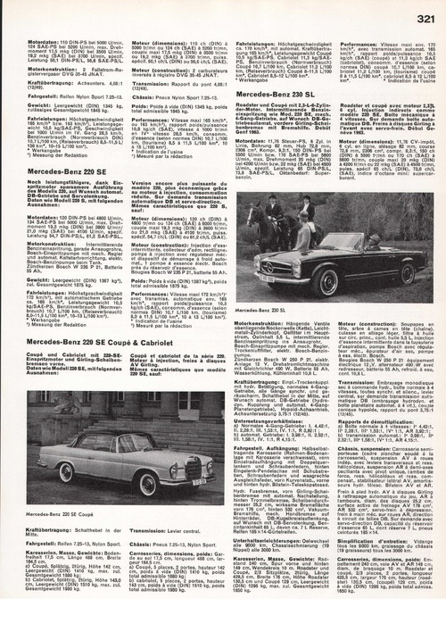 Qualitätsmarke. Vorkämpfer zahlreicher technischer Fortschritte.Daimler-Benz AG, StuttgartMODELLREIHE - GAMME190 - 190 D - 220 - 220 S - 220 SE - 300 SE - 300 SE Lang - 3 Grosser Mercedes 600