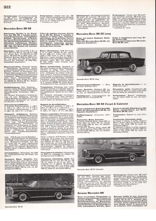Qualitätsmarke. Vorkämpfer zahlreicher technischer Fortschritte.Daimler-Benz AG, StuttgartMODELLREIHE - GAMME190 - 190 D - 220 - 220 S - 220 SE - 300 SE - 300 SE Lang - 3 Grosser Mercedes 600