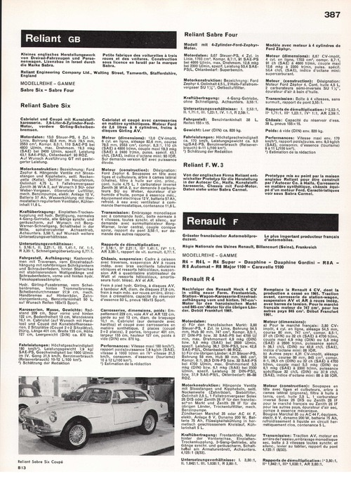 Nachfolger des Renault Heck 4 CV in völlig neuer Form. Frontantrieb, Station - Wagon-Karosserie-Einzelradaufhängung vorn und hinten. 747-cm3-Motor für den französischen Markt und 845-cm3-Motor für die übrigen Länder. Debüt Frankfurt 1961.