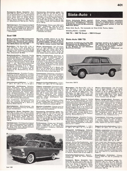 Sportliche Ausführung des Fiat 1500. Höchstleistung 85 CUNA-PS, Mittelschalthebel und Drehzahlmesser. In der Schweiz nur auf besondere Bestellung lieferbar.