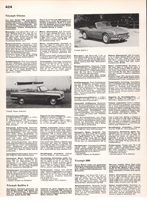 Sportliches Cabriolet basierend auf dem Modell Herald 1200, jedoch mit höherer Motorleistung, 2 SU-Vergasern und vordem Girling-Scheibenbremsen. Debüt Herbst 1962.