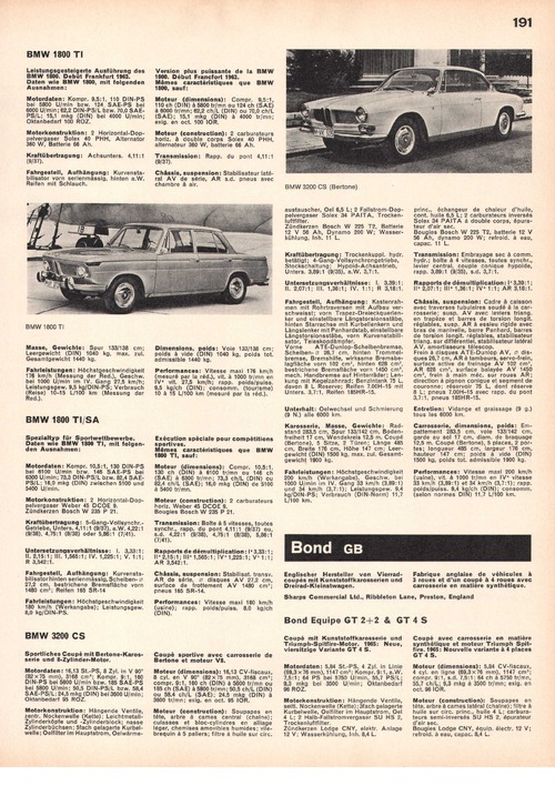 Spezialtyp für Sportwettbewerbe. Daten wie BMW 1800 Tl, mit folgenden Ausnahmen: