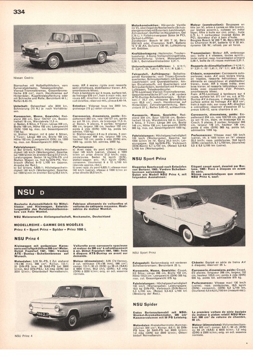 Elegantes Sportcoupé nach Entwürfen von Bertone. 1965: Vordere Scheibenbremsen serienmässig. Daten wie Modell NSU Prinz 4, mit folgenden Ausnahmen: