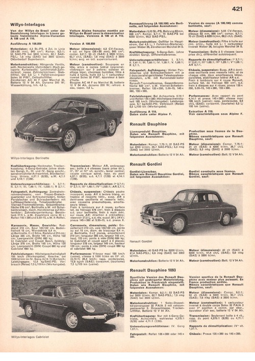 Lizenzprodukt Dauphine.Daten wie Renault Dauphine, mitfolgenden Ausnahmen: