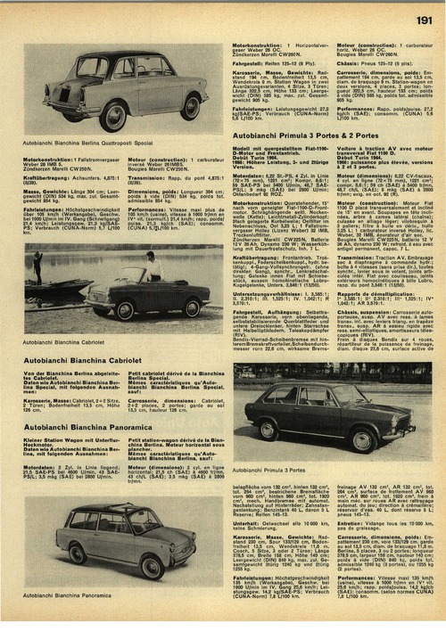 Kleiner Station Wagon mit Unterflur- Heckmotor.Daten wie Autobianchi Bianchina Berlina, mit folgenden Ausnahmen: