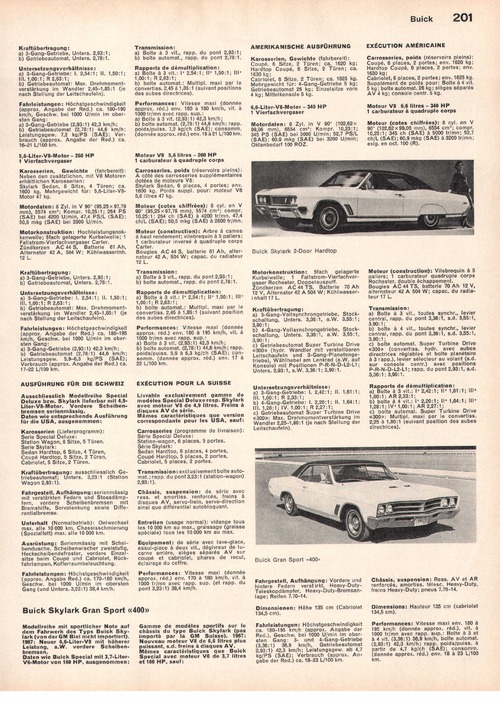 Modellreihe mit sportlicher Note auf dem Fahrwerk des Typs Buick Skylark (von der GM Biel nicht importiert). 1967: Neuer 6,6-Liter-V8 mit höherer Leistung, a.W. vordere Scheibenbremsen.Daten wie Buick Special mit 3,7-Liter- V6-Motor von 160 HP, ausgenommen: