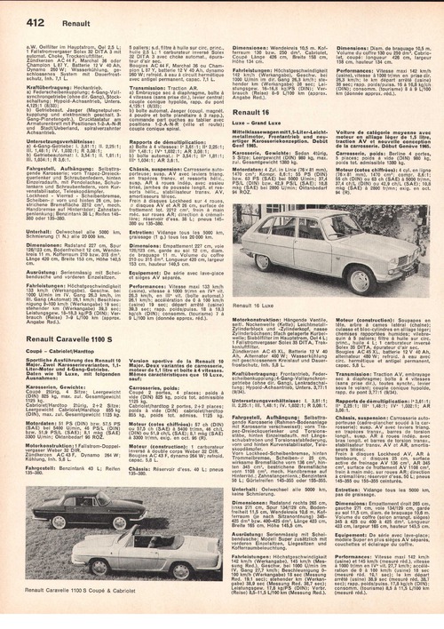 Grösster französischer Automobilproduzent. Sämtliche SAE-Leistungsangaben nach neuen USA-Normen.
