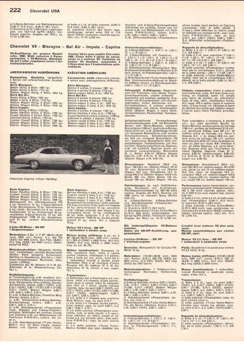 V8-Ausführung der grossen Modellreihe. 1968: Wahl zwischen 4 Karosserieserien, 5 V8-Motoren, Standard- V8 auf 5 Liter vergrössert sowie 2 Getriebeautomaten.AMERIKANISCHE AUSFÜHRUNG