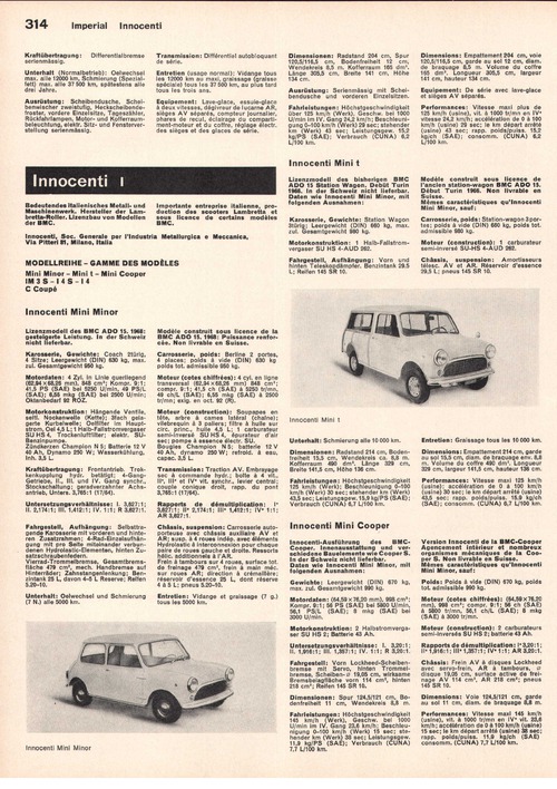 Lizenzmodell des bisherigen BMC ADO 15 Station Wagon. Debüt Turin 1966. In der Schweiz nicht lieferbar. Daten wie Innocenti Mini Minor, mit folgenden Ausnahmen: