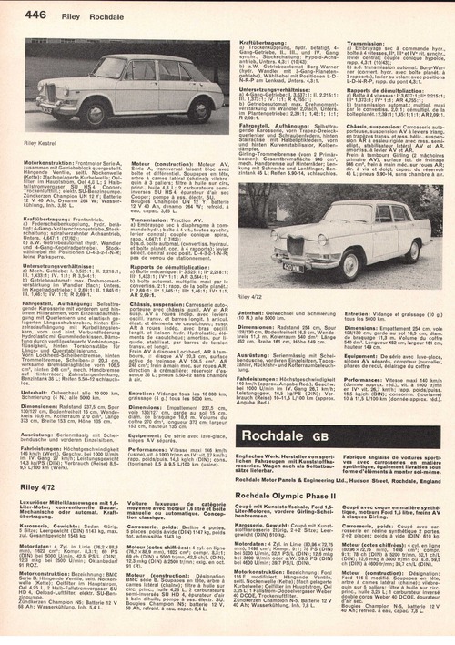 Englische Tourenwagen-Marke der früheren Nuffield-Organisation, die mit Austin die British Motor Corporation bildet. Für 1968 kein Import der Marke Riley in die Schweiz vorgesehen