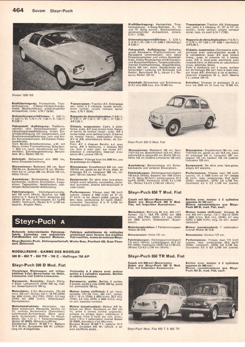 Coach mit 660-cm3-Boxermotor. Daten wie Steyr-Puch 500 D Mod. Fiat, mit folgenden Ausnahmen: