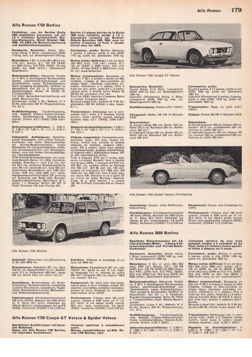 Sportlichere Ausführungen mit kürzerem Radstand.Daten wie Alfa Romeo 1750 Berlina, mit folgenden Ausnahmen: