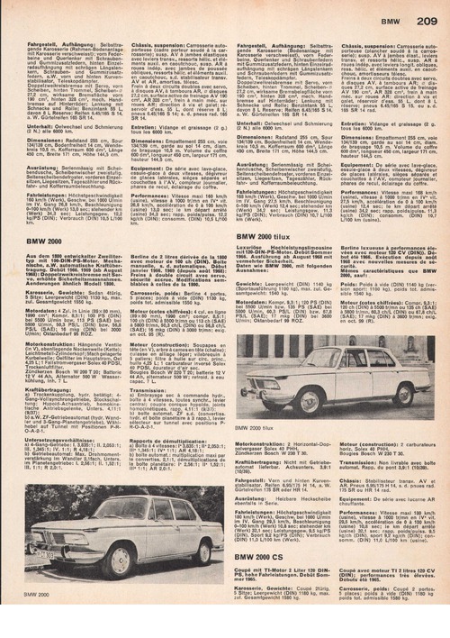 Luxuriöse Hochleistungslimousine mit 120-DIN-PS-Motor. Debüt Sommer 1966. Ausführung ab August 1968 mit vermehrter Sicherheit. Daten wie BMW 2000, mit folgenden Ausnahmen: