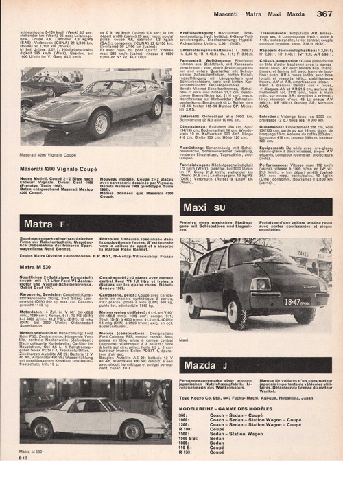 Neues Modell. Coupé 2+2 Sitze nach Entwurf Vignale. Debüt Genf 1969 (Prototyp Turin 1968). Daten entsprechend Maserati Mexico 4200 Coupé.