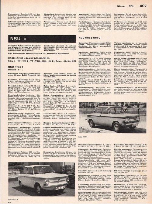 Geräumiger Wagen der unteren Mittelklasse. Luftgekühlter 1-Liter-4-Zylinder-Motor im Heck, quergestellt. Debüt Frankfurt 1963.