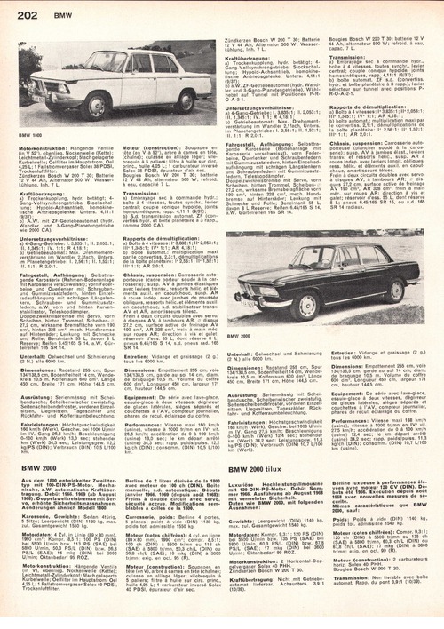 Luxuriöse Hochleistungslimousine mit 120-DIN-PS-Motor. Debüt Sommer 1966. Ausführung ab August 1968 mit vermehrter Sicherheit. Daten wie BMW 2000, mit folgenden Ausnahmen: