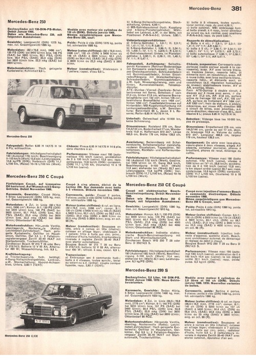 Sechszylinder, 2,8 Liter, 140 DIN-PS. Debüt Januar 1968. 1970: Neue Getriebevarianten