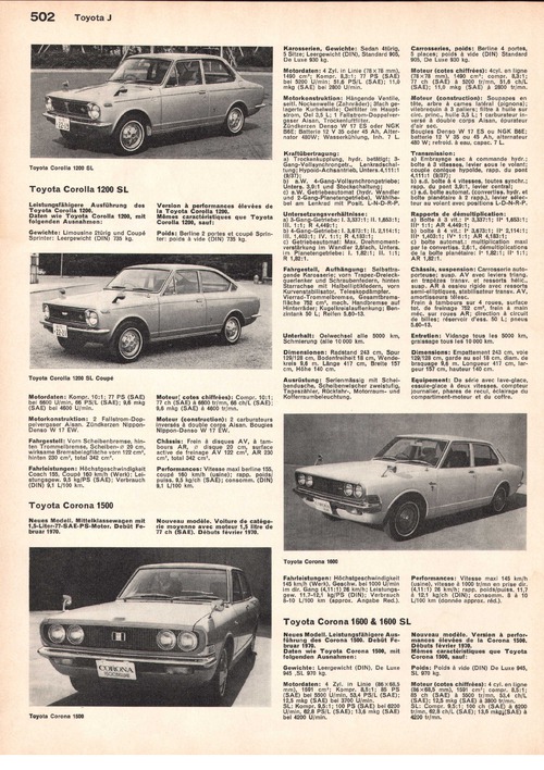 Neues Modell. Leistungsfähigere Ausführung des Corona 1500. Debüt Februar 1970.Daten wie Toyota Corona 1500, mit folgenden Ausnahmen:Gewichte: