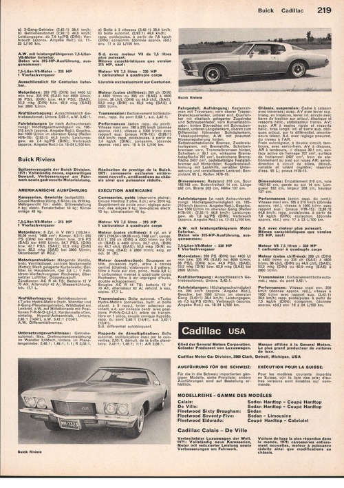 Buick RivieraSpitzenerzeugnis der Buick Division. 1971: Vollständig neues, eigenwilliges Gewand, Verbesserungen am Fahrwerk sowie gedrosselte Motorleistung.