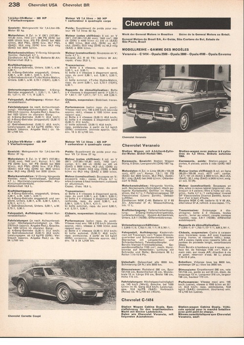 Chevrolet C-1414Station Wagon Cabina Dupla. Spezialfahrzeug für den brasilianischen Markt mit kleiner Ladebrücke. Daten wie Chevrolet Veraneio, mit folgenden Ausnahmen: