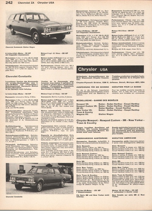 Grosser luxuriöser Amerikaner mit V8-Motor. 1971: Leichte Karosserieretouchen; gedrosselte Motoren. Cabriolet nicht mehr lieferbar.