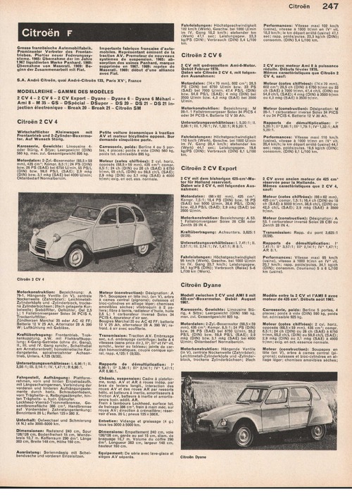 Grosse französische Automobilfabrik. Prominenter Vertreter des Frontantriebes. Pionier neuer Federungssysteme. 1965: Übernahme der im Jahre 1967 liquidierten Marke Panhard. 1969: Übernahme von Maserati. 1969: Beginn der Zusammenarbeit mit Fiat.