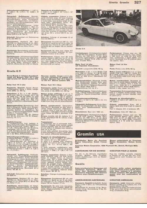 Ginetta G 21Neues Modell. 2+2sitziges Kunststoffcoupe mit Motoren Ford V6 3 Liter oder 1,6 Liter GT. Debüt London 1970.