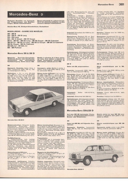 Mercedes-Benz 220&220 DAuf dem MB 200 basierender Vierzylinder m. vergrössertem Hubvolumen; Benzinoder Dieselmotor.Mercedes-Benz 220/220 D