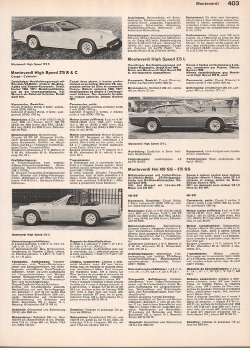Monteverdi HaiMittelmotorcoupé mit 7-Liter-Chrysler-«Hemi »-Motor, ZF-Fünfganggetriebe und De-Dion-Hinterachse. Debüt Genf 1970.1971: Auf Wunsch mit 7,2-Liter-V8- Motor mit 375 HP.