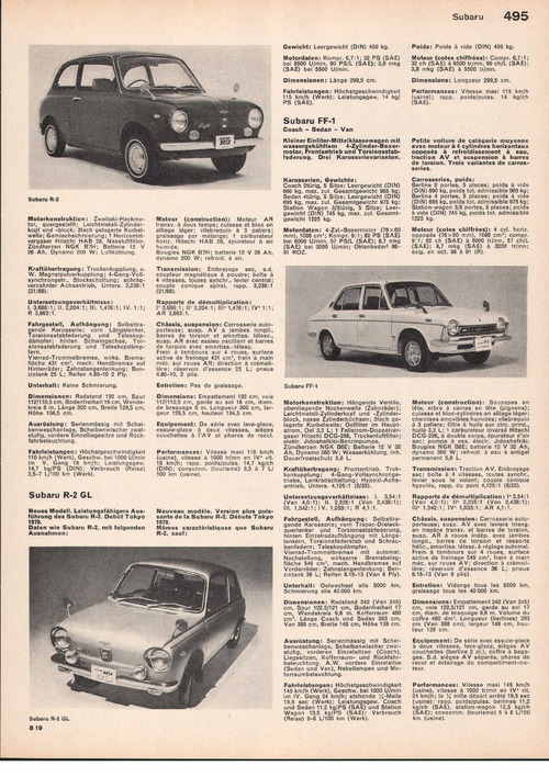 Subaru R-2 GLNeues Modell. Leistungsfähigere Ausführung des Subaru R-2. Debüt Tokyo 1970.Daten wie Subaru R-2, mit folgenden Ausnahmen: