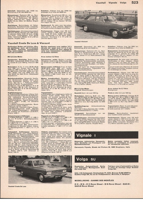 Geräumiger Sedan mit 3,3-Liter- (Cresta wahlweise auch mit 2,7-Liter)-6- Zyl.-Motor. Viscount: Luxusausführung, serienmässig mit Getriebeautomat und Lenkhilfe.