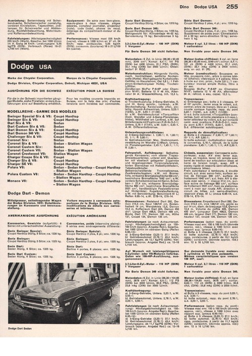 Mittelgrosser, selbsttragender Wagen der Dodge Division. 1972: Detailänderungen an Karosserie und Innenausstattung