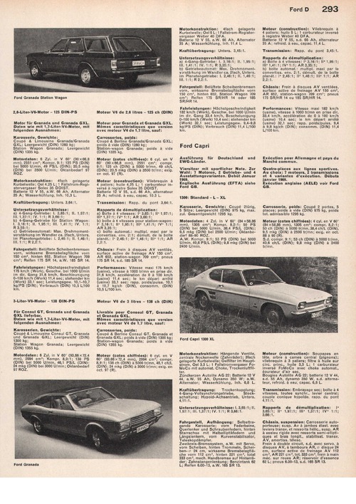 Ausführung für Deutschland und EWG-Länder. Viersitzer mit sportlicher Note. Zur Wahl: 7 Motoren, 2 Getriebeund 4Ausstattungsvarianten. Debüt Januar1969.Englische Ausführung (EFTA) siehe Ford GB.
