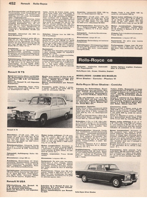 USA-Ausführung des Renault 16. A.W. mit Getriebeautomat. In der Schweiz nicht lieferbar. Daten wie Renault 16, mit folgenden Ausnahmen: