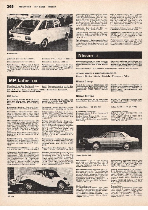 Nissan SkylineMittelklassewagen mit 4- oder 6-Zylinder-Motor. Drei Getriebevarianten
