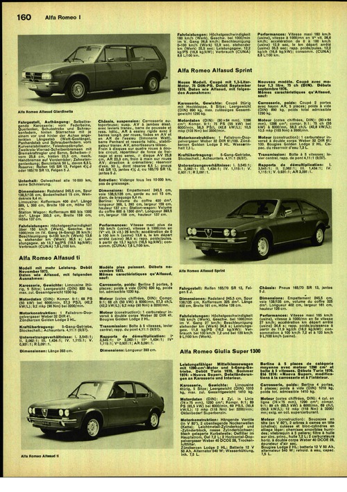 Neues Modell. Coupé mit 1,3-Liter- Motor, 75 DIN-PS. Debüt September 1976. Daten wie Alfasud, mit folgenden Ausnahmen:Alfa Romeo Alfasud Sprint