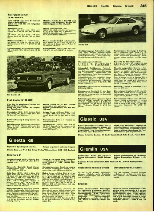 Kleines italienisches Werk. Baut auf den Fiat-Typen 126, 127, 128 und 132 basierende Modelle mit gesteigerter Leistung. Vertrieb unter dem eigenen Namen Giannini.