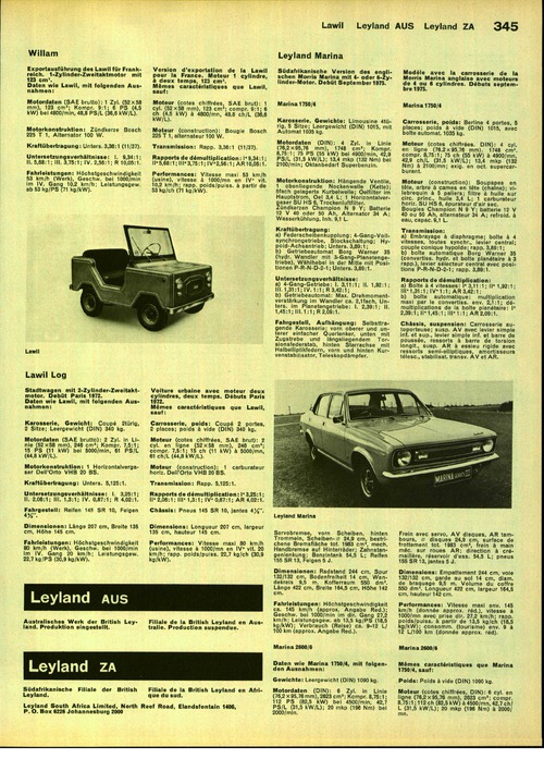 Südafrikanische Version des englischen Morris Marina mit 4- oder 6-Zylinder-Motor. Debüt September 1975.Daten wie Marina 1750/4, mit folgenden Ausnahmen: