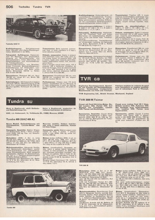Coupé mit Ford-V6-3-Liter-Motor. Debüt London 1972. Herbst 1975: Auf Wunsch mit Turbolader. London 1976: Taimar mit Heckklappe.