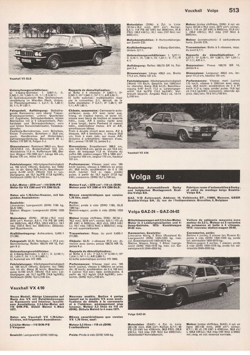 Neues Modell. 4türige Limousine auf Basis des VX mit Detailänderungen an Karosserie und Interieur, luxuriösere Ausstattung. 2,3-Liter-Motor mit 118 DIN-PS. Debüt Malmö 4. März 1977.Daten wie Vauxhall VX 1,76-Liter- Version, mit folgenden Ausnahmen: