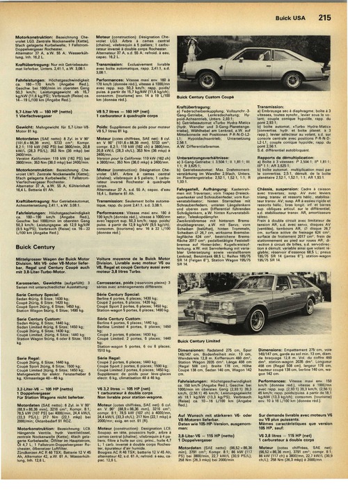 Mittelgrosser Wagen der Buick Motor Division. Mit V6 oder V8 Motor lieferbar, Regal und Century Coupé auch mit 3,8-Liter-Turbo-Motor.