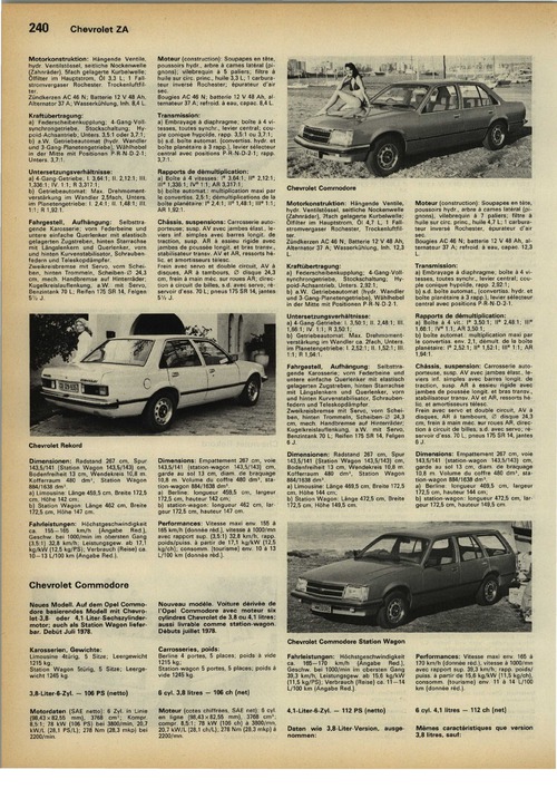 Neues Modell. Auf dem Opel Commodore basierendes Modell mit Chevrolet 3,8 oder 4,1-Liter-Sechszylindermotor; auch als Station Wagon lieferbar. Debüt Juli 1978.
