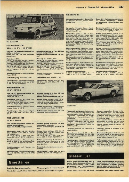 Kunststoffcoupé mit 2 + 2 Sitzen. Motor Chrysler Hunter 1,7 Liter. Debüt London 1971.