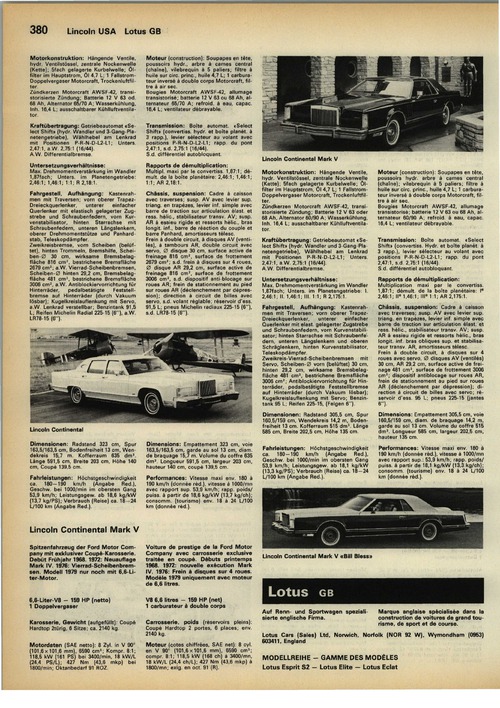 Spitzenfahrzeug der Ford Motor Company mit exklusiver Coupé-Karosserie. Debüt Frühjahr 1968. 1972: Neuauflage Mark IV. 1976: Vierrad-Scheibenbremsen. Modell 1979 nur noch mit 6,6-Liter-Motor.