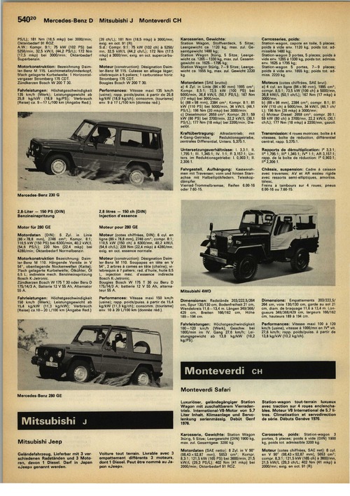 Luxuriöser, geländegängiger Station Wagon mit zuschaltbarem Vierradantrieb. International-V8-Motor von 5,7 Liter Inhalt. Klimaanlage und Servolenkung serienmässig. Debüt Genf 1976.