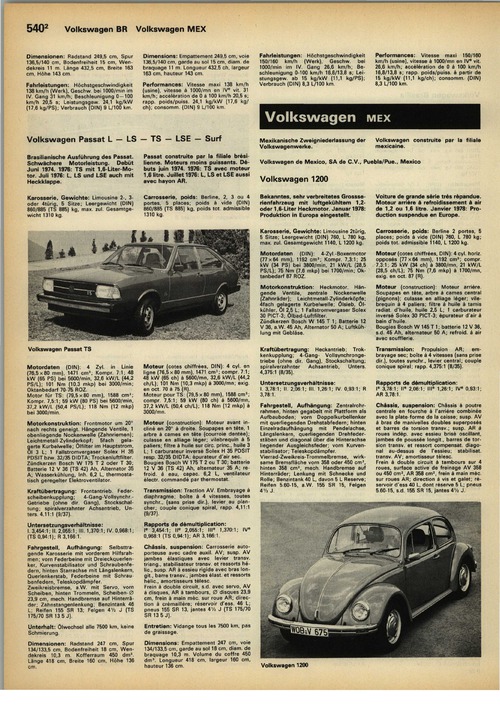 Brasilianische Ausführung des Passat. Schwächere Motorleistung. Debüt Juni 1974. 1976: TS mit 1,6-Liter-Motor. Juli 1976: L, LS und LSE auch mit Heckklappe