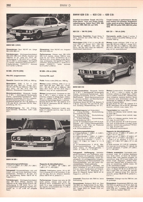 Sportlichluxuriöses Coupé mit 6-Zylinder-Motor. Vorn und hinten Einzelradaufhängung. Debüt Genf 1976, 635 CSi Juli 1978, 628 CSi Juli 1979.