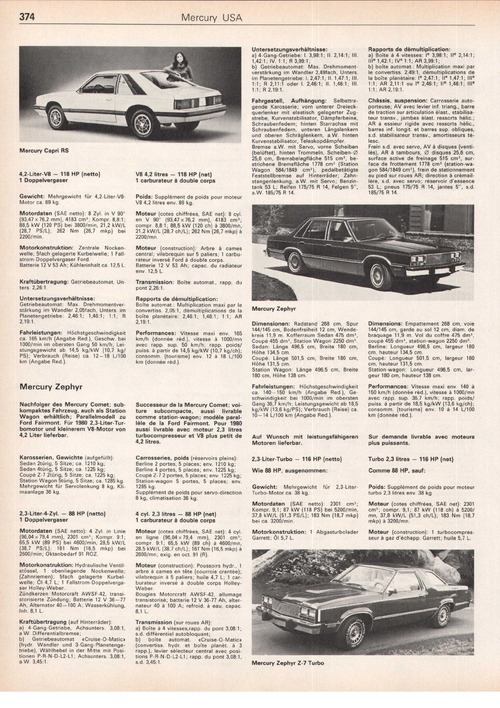 Nachfolger des Mercury Cornet; subkompaktes Fahrzeug, auch als Station Wagon erhältlich; Parallelmodell zu Ford Fairmont. Für 1980 2,3-Liter-Turbomotor und kleinerem V8-Motor von 4,2 Liter lieferbar.