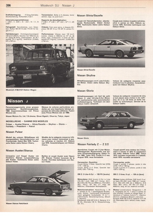 Coupé mit Vierzylindermotor, obenliegende Nockenwelle. Debüt Herbst 1975. Technische Daten siehe Datsun Silvia.